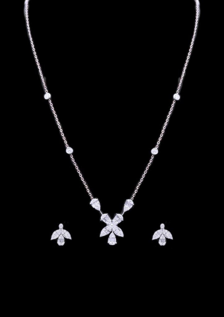 Enhance your style with this stunning white gold jewelry set, featuring a delicately crafted necklace and a matching pair of earrings. Made from 18K white gold and embellished with sparkling natural diamonds, this set is designed for those who appreciate luxury and elegance. The refined design and the high-quality diamonds make it the perfect addition to any jewelry collection or as a memorable gift for a special occasion.