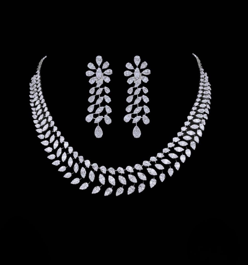 Indulge in the elegance of this stunning white gold necklace and earring set, adorned with brilliant natural diamonds. Crafted from premium 18K white gold, this set is the perfect combination of luxurious design and impeccable craftsmanship, making it a showstopper for any event.