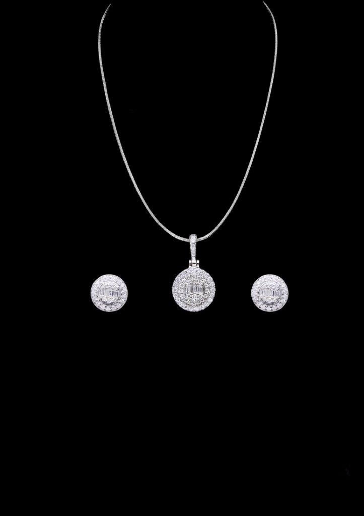 Elevate your style with this exquisite white gold pendant with chain and earring set. Crafted with precision, this set offers a perfect blend of sophistication and sparkle, featuring natural diamonds set in 18K white gold.