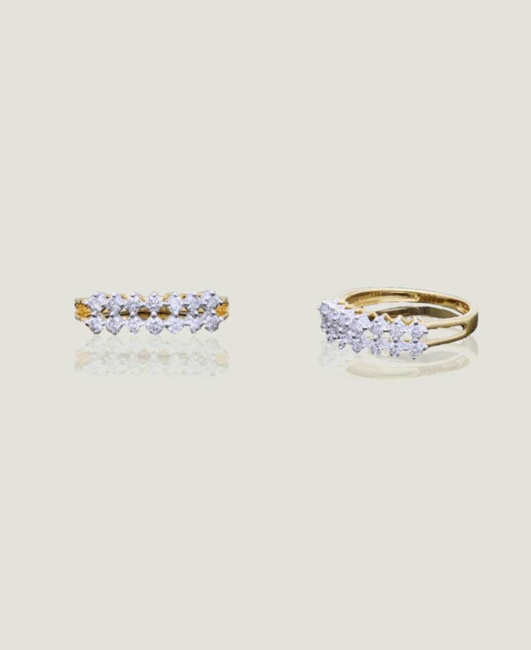 Crafted in luxurious 18K yellow gold, this beautiful ring features 0.57 carats of natural diamonds that radiate brilliance and elegance. The diamonds are carefully chosen with a VS-SI clarity grade, offering a stunning balance of purity and value, while the G-H color range enhances the overall sparkle.